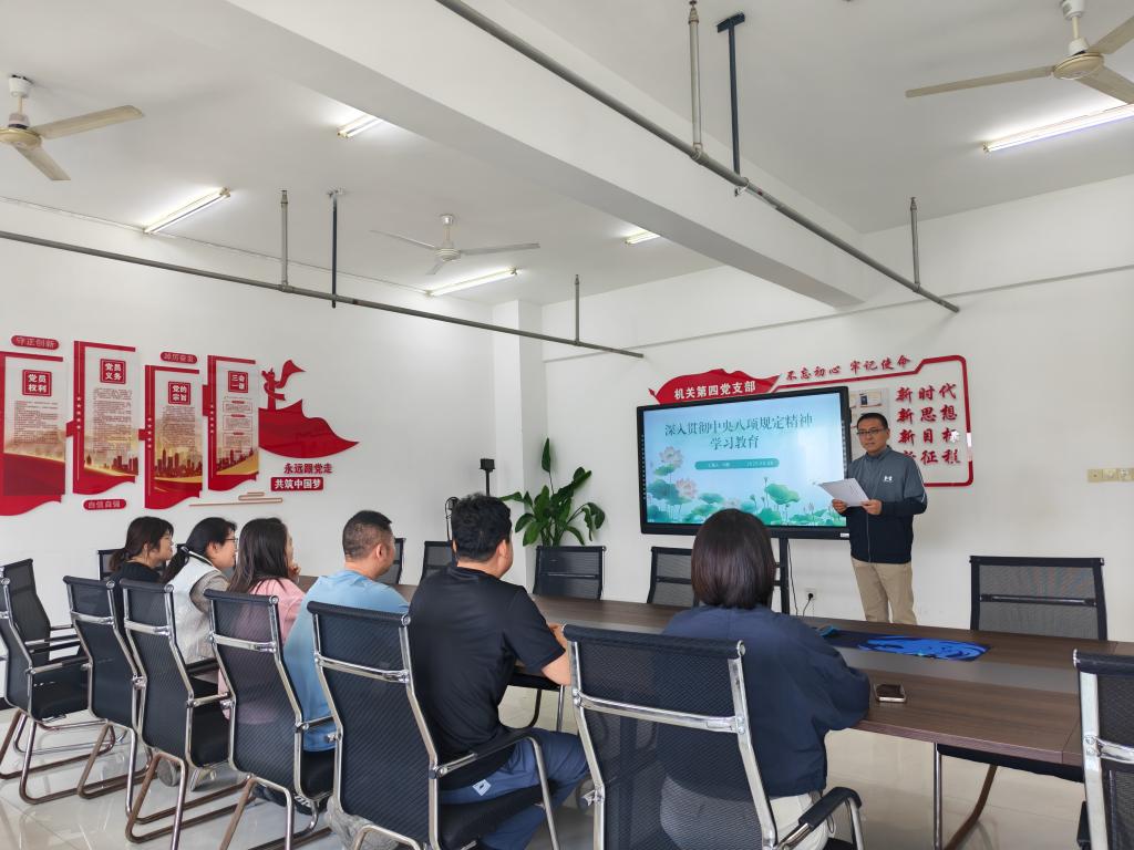 5月28日下午,机关第四党支部在综合楼320会议室开展学习贯彻中央八项规定精神专题党课,旨在深入推进全面从严治党,强化支部党员纪律作风建设,切实把中央八项规定精神落到实处。机关第四党支部全体党员参加了党课学习。