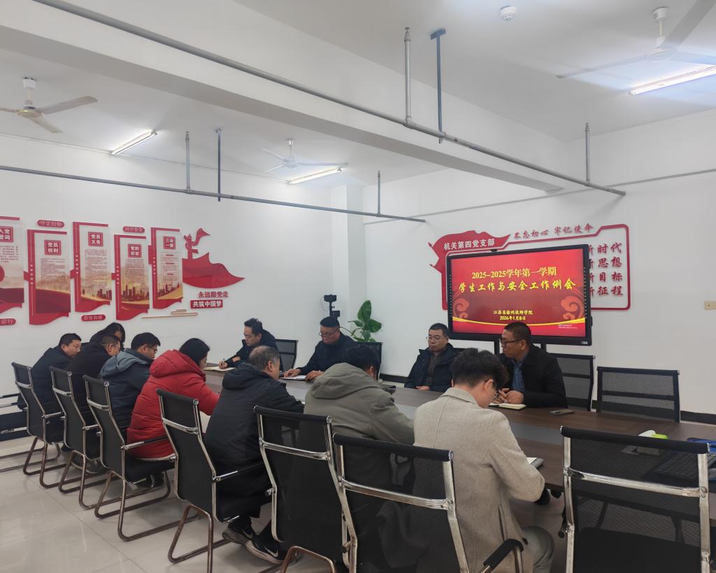 2026年1月8日,我校在综合楼320会议室组织召开安全工作专题会议,旨在切实压实校园安全管理责任,精准排查化解各类安全隐患,全力保障期末及岁末年初校园安全稳定。党委委员、副校长周青生出席会议并讲话,学工处、保卫处相关工作人员,各二级学院学管副院长参加会议。会议由学工处处长闫振主持。