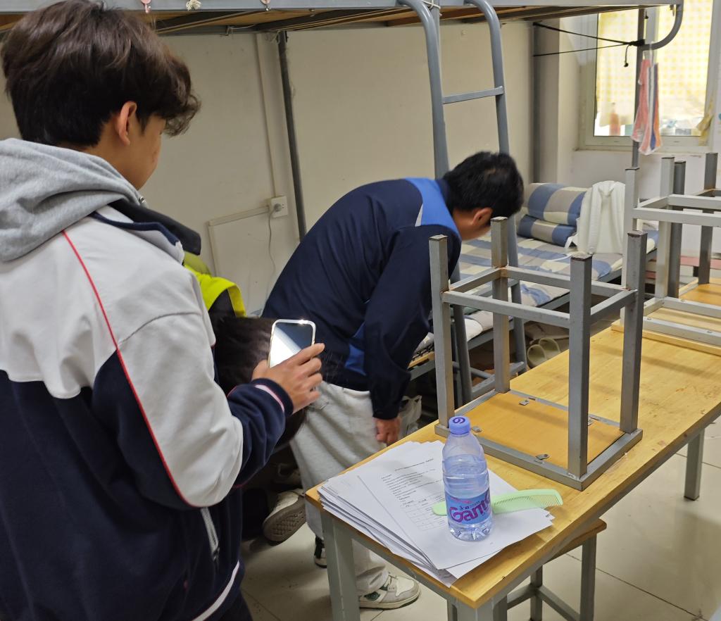 检查过程中,检查组深入各栋学生宿舍楼,逐层逐间细致排查,重点聚焦四大类核心隐患。用电安全方面,严查违规使用大功率电器、私拉乱接电线、插座串联、“人走未断电”及使用伪劣破损电器等行为,仔细核查电线、插座老化情况,防范用电火灾风险。消防安全方面,检查宿舍及公共区域消防设施完好有效性,查看灭火器、应急照明、疏散指示标志是否齐全可用,排查疏散通道、安全出口畅通情况,清理宿舍内易燃杂物。违禁物品方面,全面清查易燃易爆物品、管制刀具等危险物品,从源头防范安全事故。同时,检查组还检查了宿舍内务卫生、物品摆放及违规留宿等情况,引导学生养成文明健康的生活习惯。