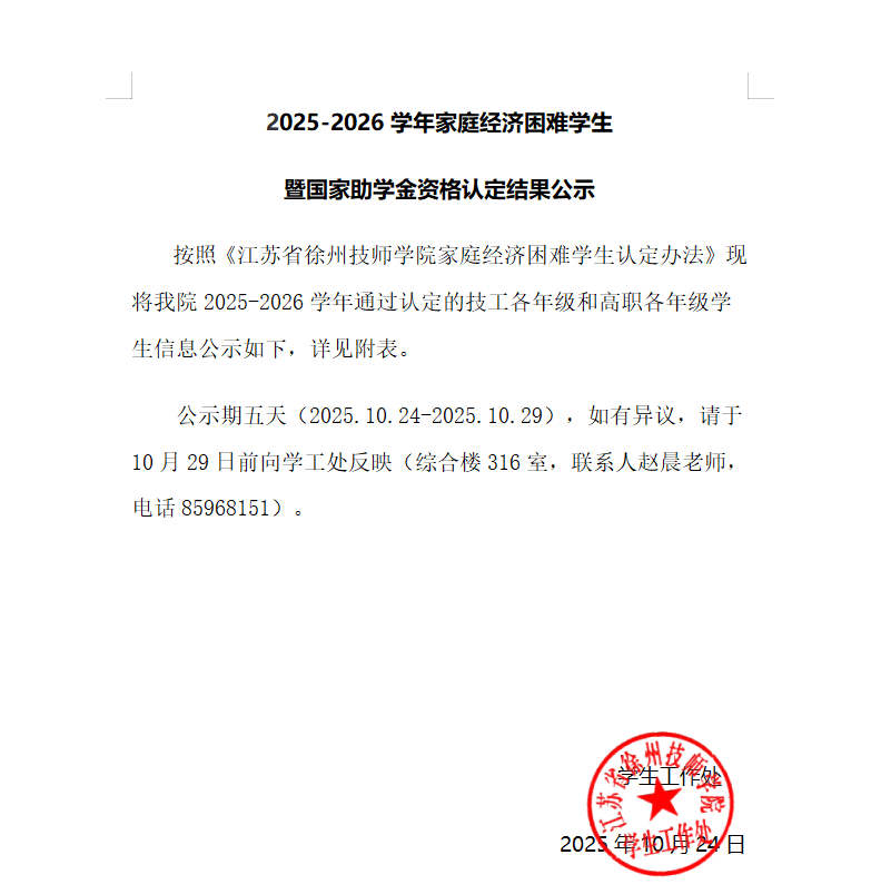 2025-2026学年家庭经济困难学生暨国家助学金资格认定结果公示
