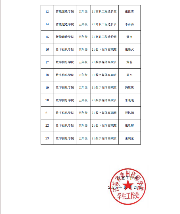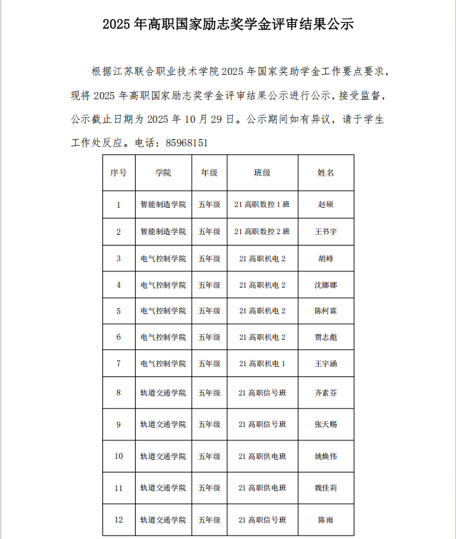 2025年高职国家励志奖学金评审结果公示