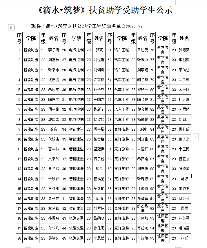 2025年《滴水•筑梦》扶贫助学受助学生名单公示